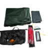 У палатки большой вход, что позволяет при необходимости вносить в него различное оборудование длякухни. Полог входа имеет два замка сверху и снизу молнии, в случае необходимости можно делать второе отверстие для вентиляции палатки, используя верхний замок молнии. Напротив входа в стенке палатки есть полукруглое вентиляционное окно. Это окно существует не только для вентиляции: если вы оборудуете летний душ, то емкость с водой можно разместить на ближайшем дереве или столбе, врытом в землю, так как обычно эта емкость достаточно много весит, а шланг с лейкой пропустить через указанное окно. И окно, и полог входа имеют специальный клапан, закрывающий молнию от проникновения воды в палатку. Кроме того, в верхней части купола палатки вшита сетка для дополнительной вентиляции. Сетка закрыта специальным колпаком, защищающим от дождя.
